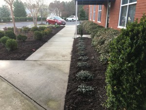 Project Scope: The former landscape at this commercial facility had matured and become a bit unruly, so we came in with some fresh color and a new design to provide interest to the front entrance.